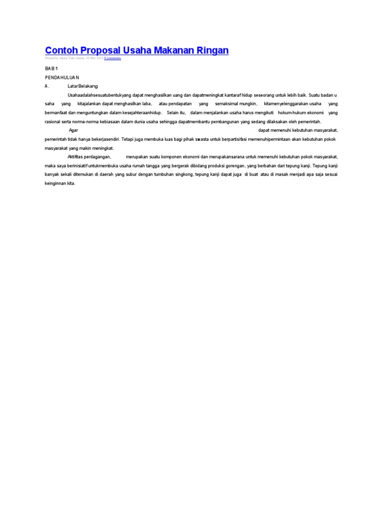 Contoh proposal usaha termasuk ke dalam jenis proposal non formal. Contoh proposal usaha makanan tradisional. Contoh proposal usaha makanan khas daerah. Hal ini dikarenakan dalam proposal anda telah merinci berbagai aspek yang. Kripik ini memiliki citarasa yang enak dan renyah.